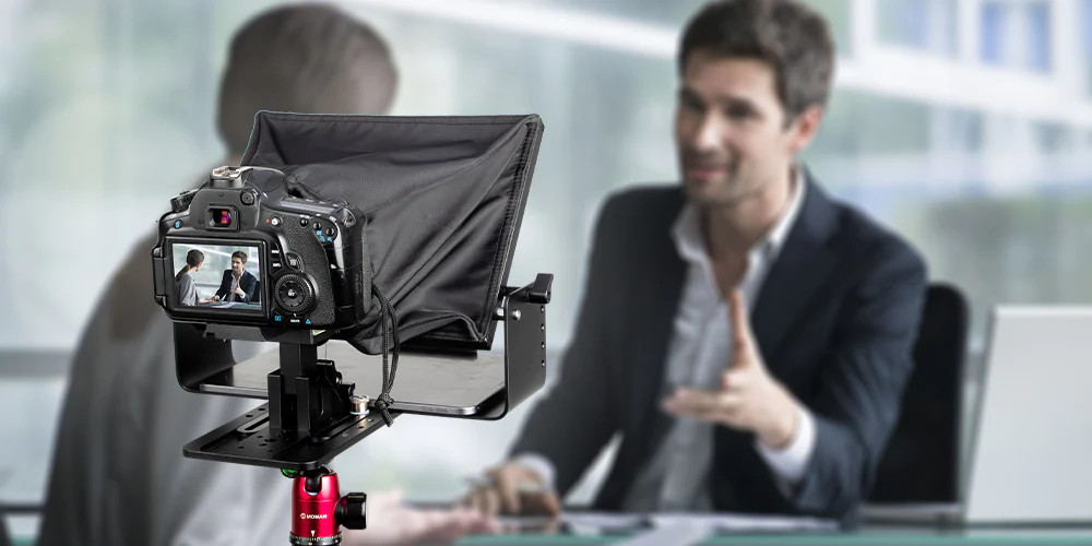 Vì vậy, với những nội dung dài, thì việc sử dụng 1 thiết bị nhắc lời là cần thiết – đó chính là Teleprompter – máy nhắc chữ.